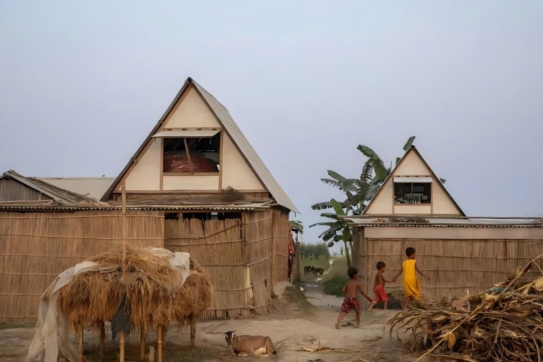 Khudi Bari是一种由竹材与钢制连接件构建的简易空间桁架,旨在应对孟加拉因气候驱动而日益加剧的